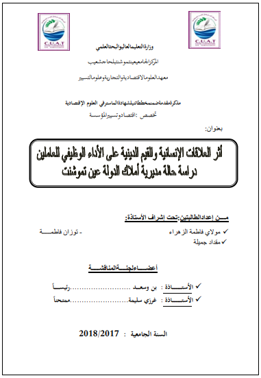 مذكرة تخرج أثار العلاقات الإنسانية والقيم الدينية على الأداء الوظيفي للعاملين